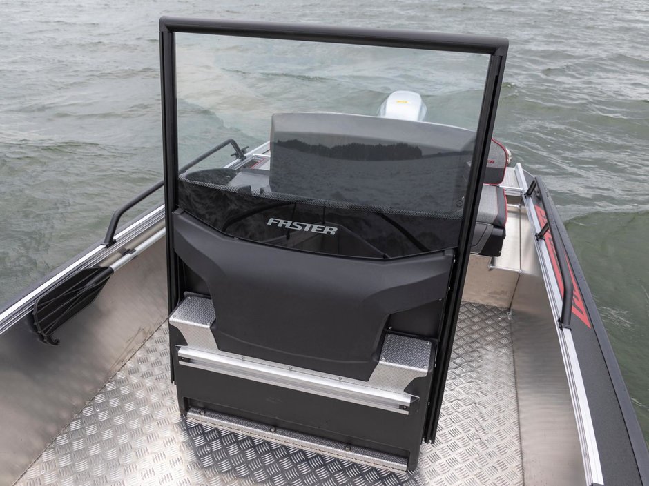 På Helsingfors Flytande båtutställning i augusti 2024 presenterades Faster 465-modellen för första gången till allmänheten, samtidigt ersättande modellprogrammets föregångarmodell 460i. Den nya modellen har en bredare styrpulpet med högre vindruta, vilket ger föraren och kartläsaren ett ännu bättre skydd mot fartvind, samtidigt som det fortfarande är lätt att röra sig runt båten. Som standard placeras styrpulpeten som mittpulpet, men den kan även enkelt flyttas till styrbordssidan, vilket gör att båten enkelt förvandlas från en mittpulpetbåt till en behändig sidpulpetsbåt. Då styrpulpeten flyttats till styrbordsida, kan även en behändig sidodörr installeras på babordsidan, som ytterligare förbättrar vindskyddet för hela aktern. Styrpulpeten har gott om förvaringsutrymme och vindrutan är av äkta glas, vilket möjliggör användning av vindrutetorkare (tillbehör). På pulpetens framsida finns en praktisk utrustningsskena för att fästa tillbehör samt två aluminiumsteg för att underlätta ombordstigning över sidorna.