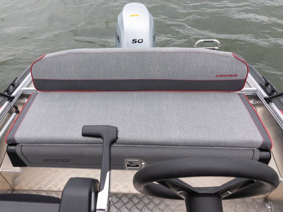 Faster 465 körs från akterbänken. Bänken utgörs av en ny fast sittplats med gott om förvaringsutrymme inuti. Den nya bänken är något högre än de sittlådor som hittills använts, vilket ger 465-modellen en bättre körergonomi jämfört med dess föregångare. En bättre körställning möjliggör även enklare hantering av kartplottern. Den nya bänken har, förutom stor förvaringskapacitet, en ny låsmekanism med högkvalitativt integrerat Abloy-lås, praktisk gasfjädring och Smartdeck -beläggning på sittytan som standard. Beläggningen är hållbar, isolerar mot kyla/hetta och är lätt att hålla ren.