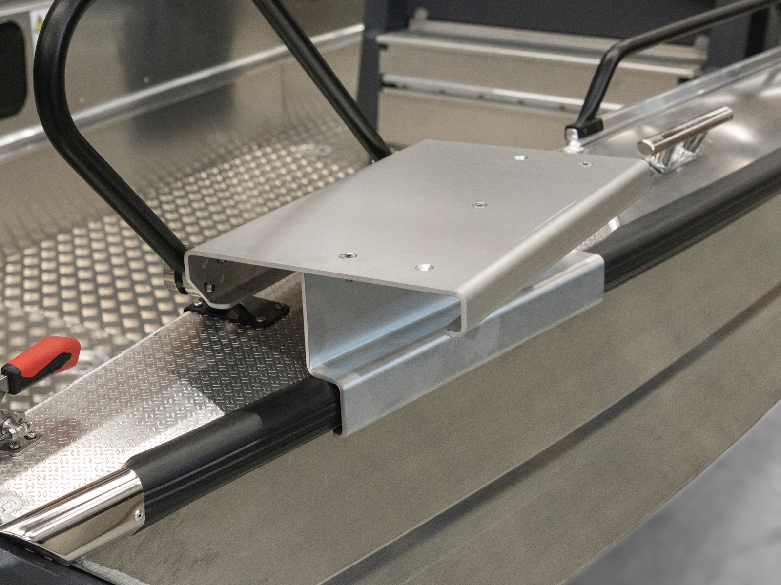 - Smalare bordsyta samt grabbräcke på babord sida