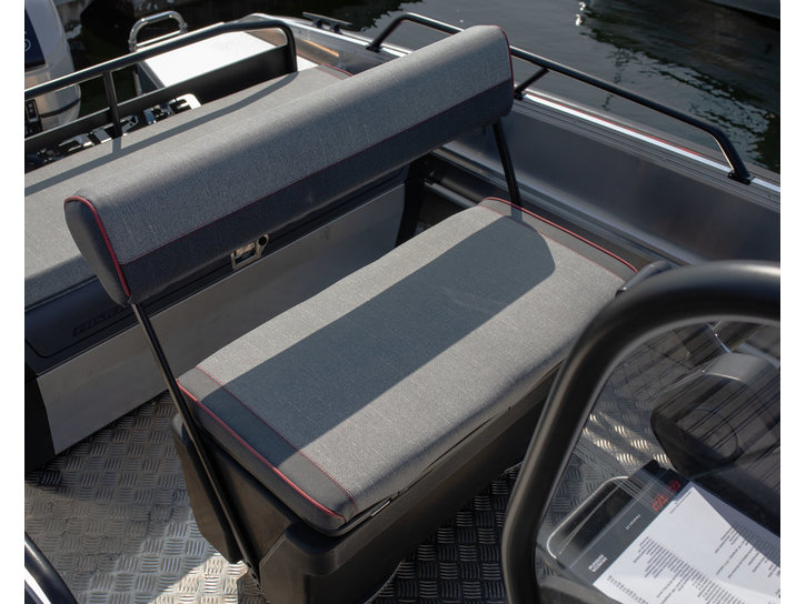Från och med årsmodell 2025 är dynans/ryggstödets färg stiligt grå (tvåtonad) med röda detaljer.