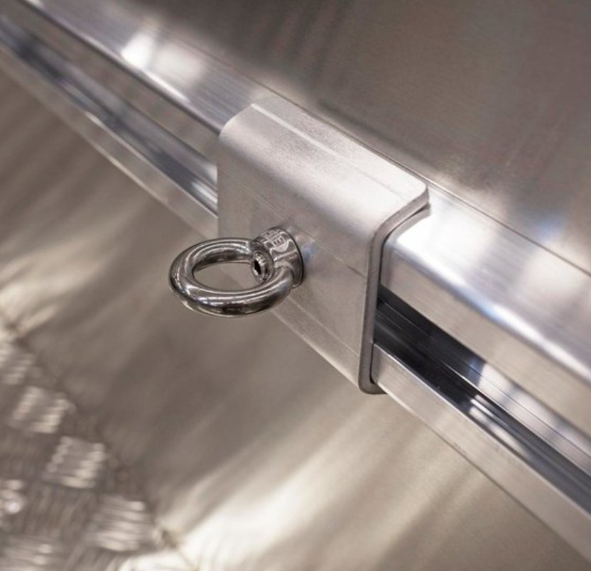 Bind fast last och packning med hjälp av dessa lastsurrningspunkter som fästs i c-skenorna i båtens inre skrovsidor.