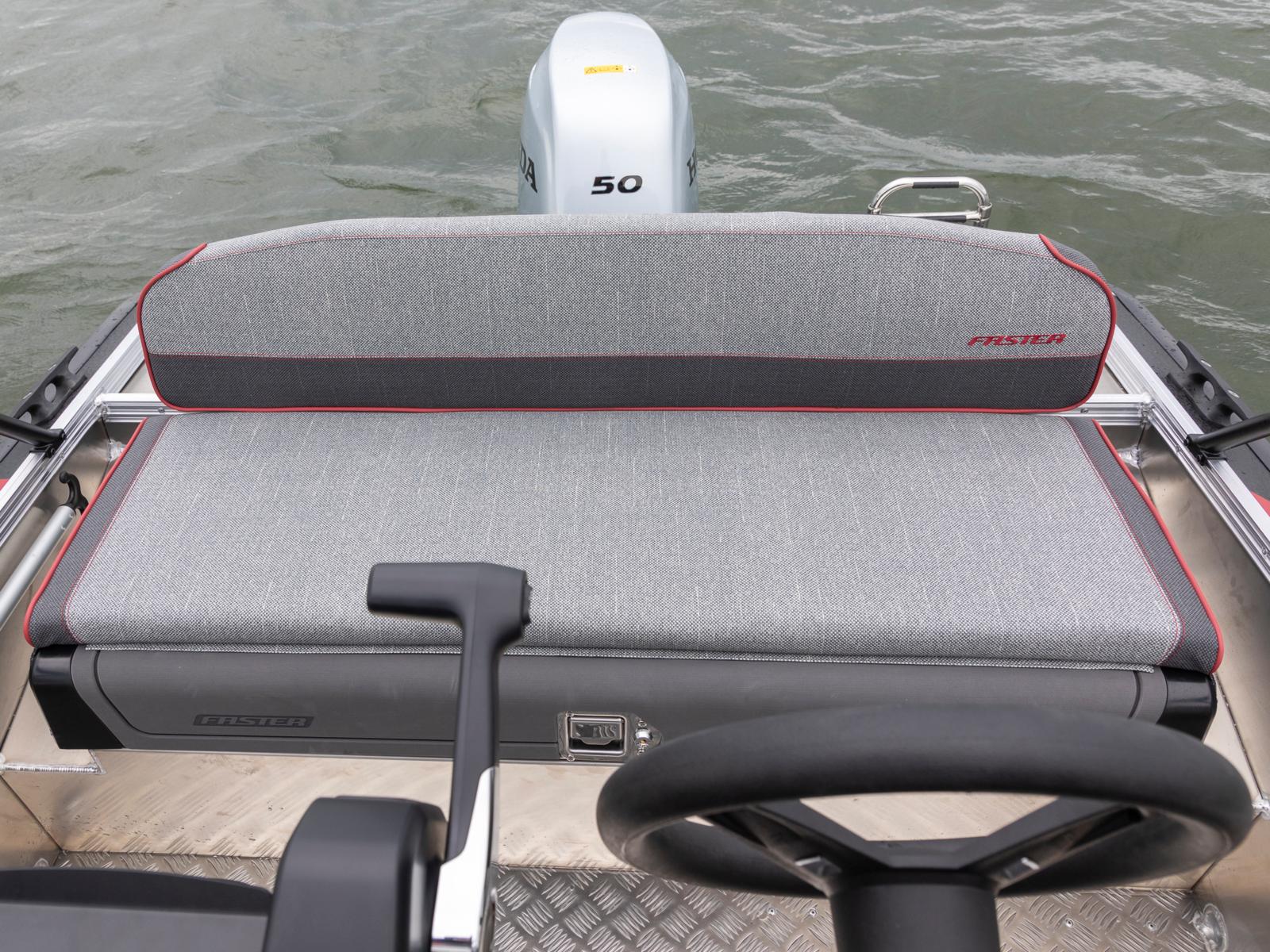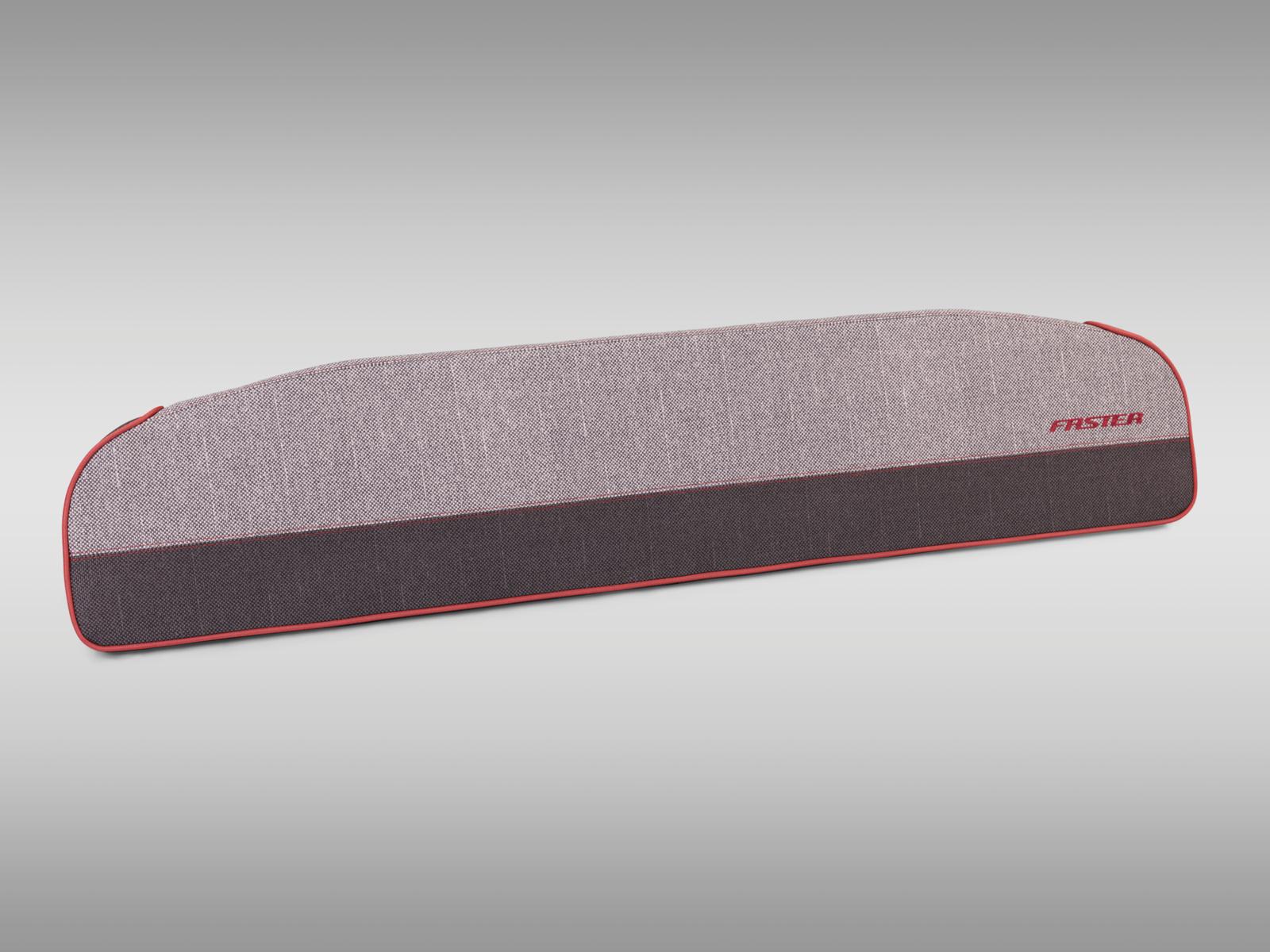 Vadderat ryggstöd till akterbänken. Stilig färg i två gråa nyanser med röda detaljer. Fästes med hjälp av dragkedja runt akterräcket.