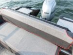 Vadderat ryggstöd till akterbänken. Stilig färg i två gråa nyanser med röda detaljer. Fästes med hjälp av dragkedja runt akterräcket.