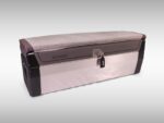 Sittdyna till 125 cm bred box i stiligt tvåtonad grå beklädnad med röda detaljer. Interiören är av DryFeel -material, vilket medför att sittdynan torkar snabbare än tidigare. Fästes till boxen med knäppen (box från årsmodell 2025).