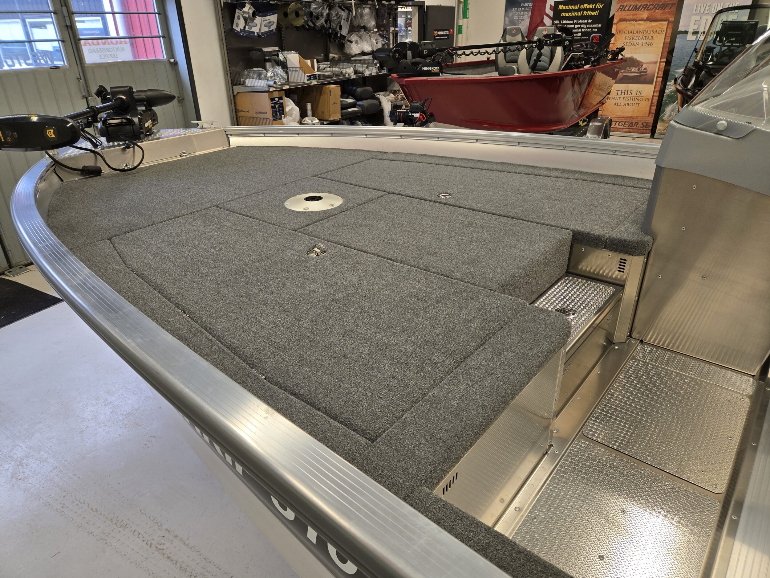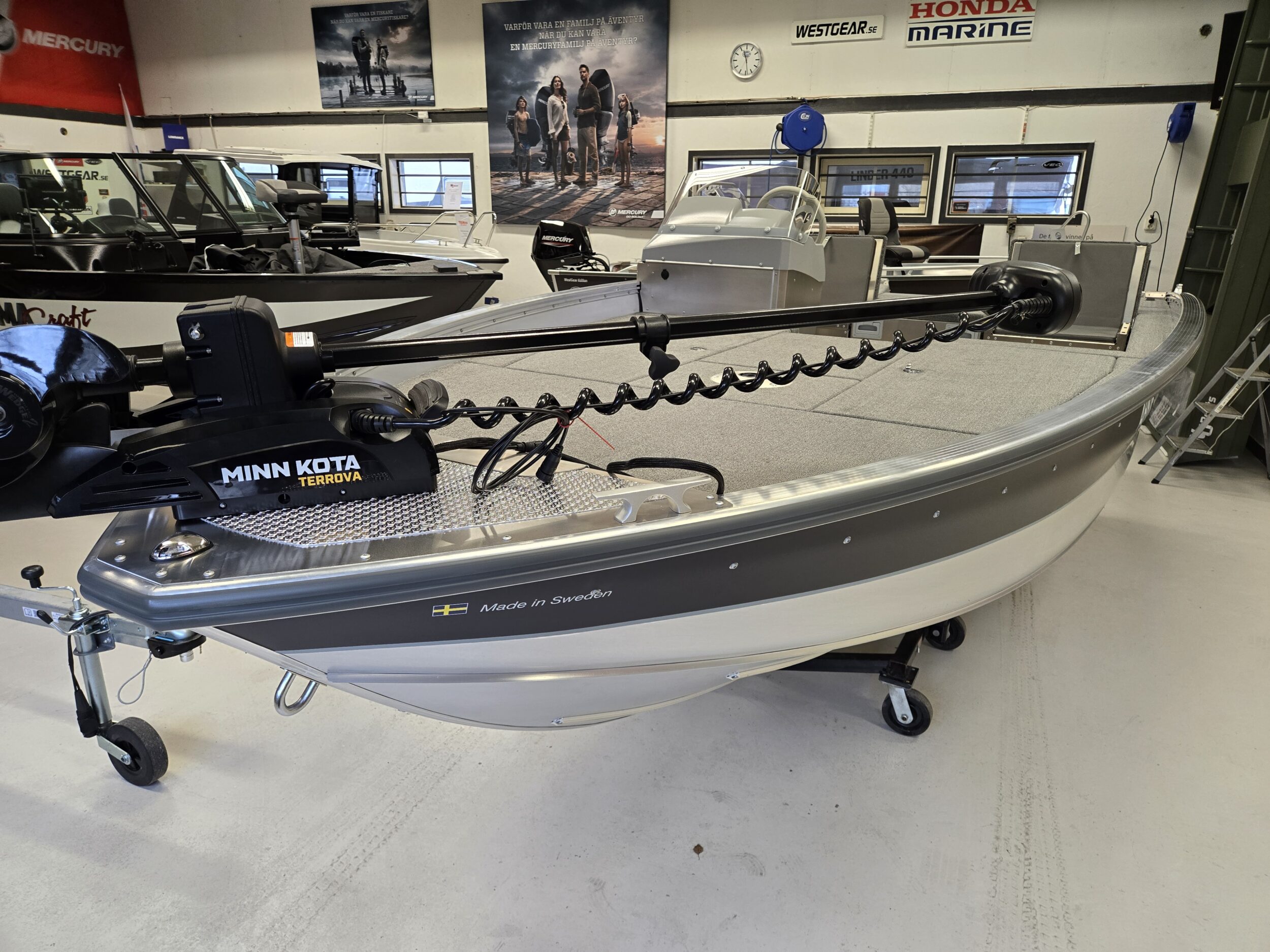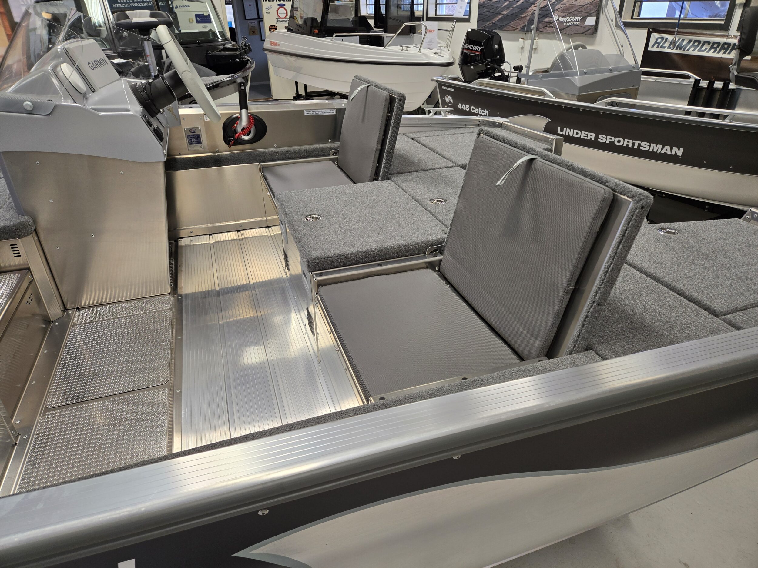 För motorval upp till 80 hk men fungerar precis lika bra med en 60Hk motor om man vill hålla nere vikten och smidigheten på ekipaget. Fart ca 30 knop med 60hk. Utrustad med Garmin Plotter/ekolod samt GT56 givare som standard, en rejäl reling med monteringsprofil för tillbehör som spöhållare från RAM mounts, badstege, automatisk länspump, spölåda, styrpulpet, lanternor och generösa person- och stuvutrymmen. Ett skonsamt båtval för miljön. Tillverkad i korrosionsbeständigt aluminium av hög kvalitet motsvarande flygplansaluminium. Osänkbar. Flyter vattenfylld med 6 personer. Stöldskyddsmärkt*. 3 års garanti. Stävögla godkänd i försäkringsklass 3.