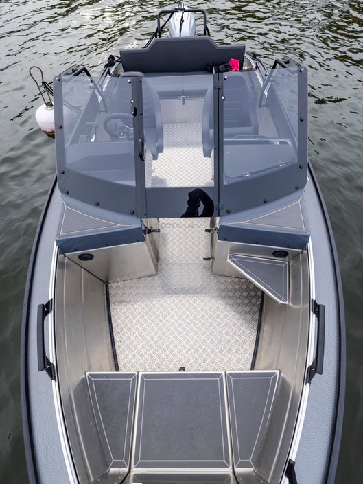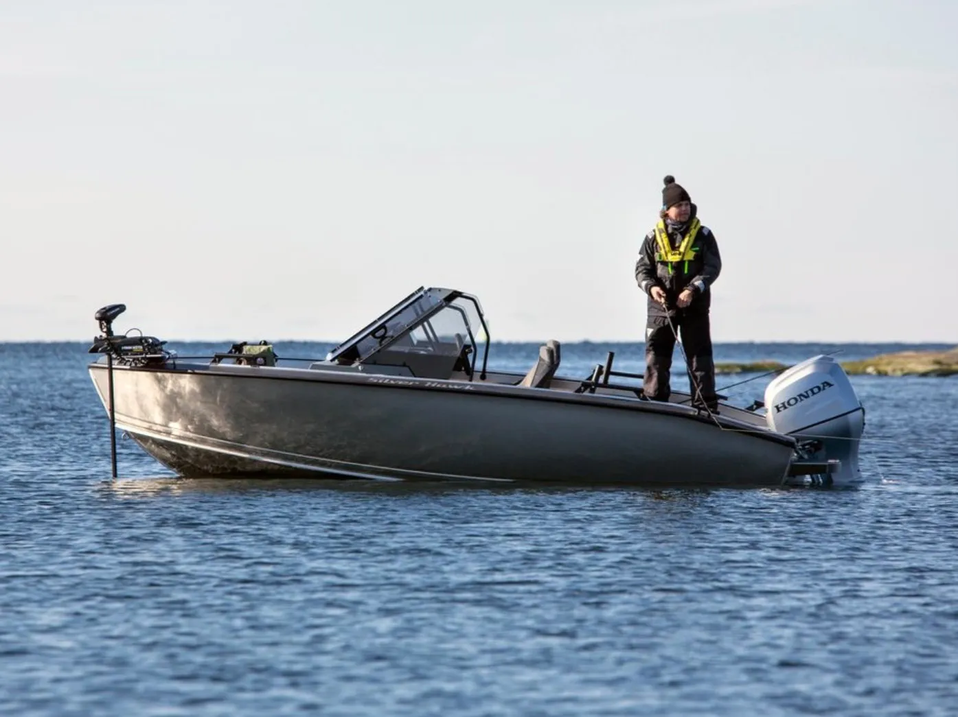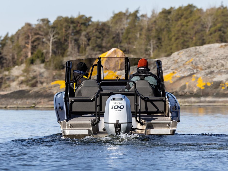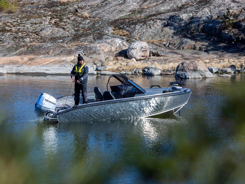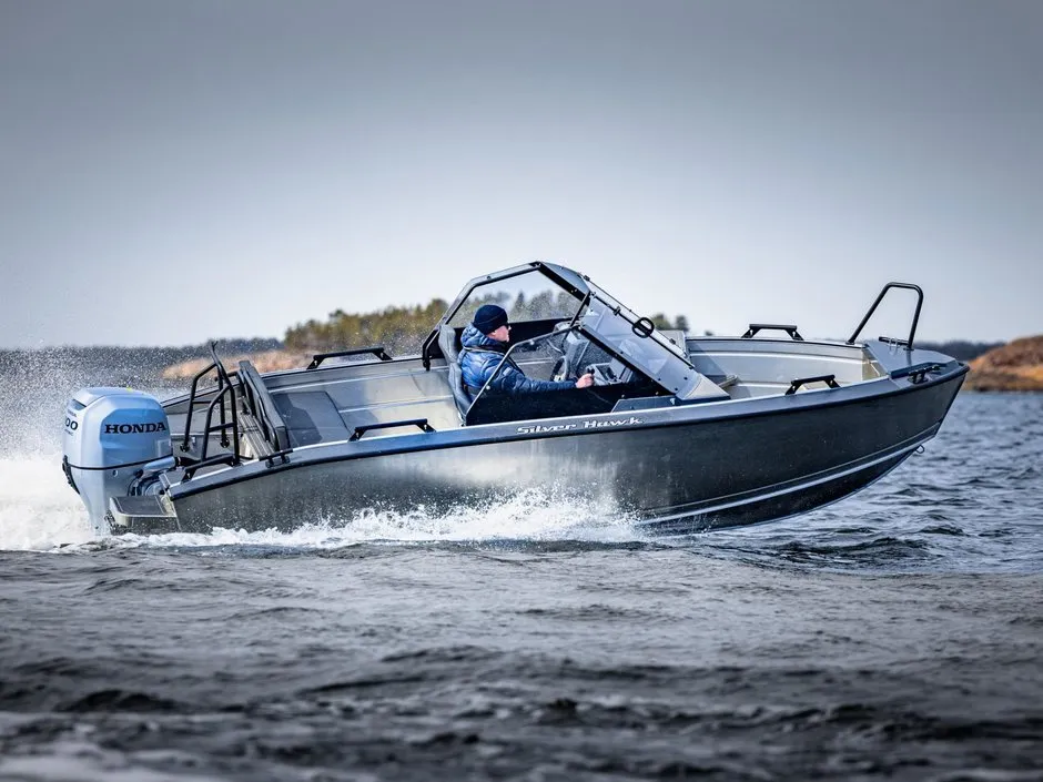 Silver Hawk BRX är designade för att tackla de utmanande väder- och vattenförhållandena vi är vana vid i Norden. Båtarnas robusta, osänkbara aluminiumkonstruktion och det vridstyva skrovet utan steglister garanterar en säker och bekväm körupplevelse med utmärkta köregenskaper. Det omtyckta Hawk-skrovet går mjukt genom vattnet och skär vågorna skarpt. I kombination med den pålitliga Honda-utom- bordaren garanteras en trygg och bekväm färd oavsett väder. Den noggrant utformade ergonomin förbättrar användarvänligheten och säkerheten i alla situationer.
