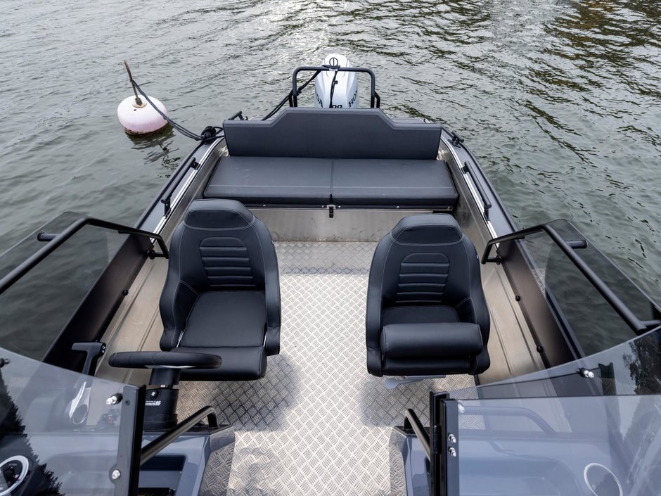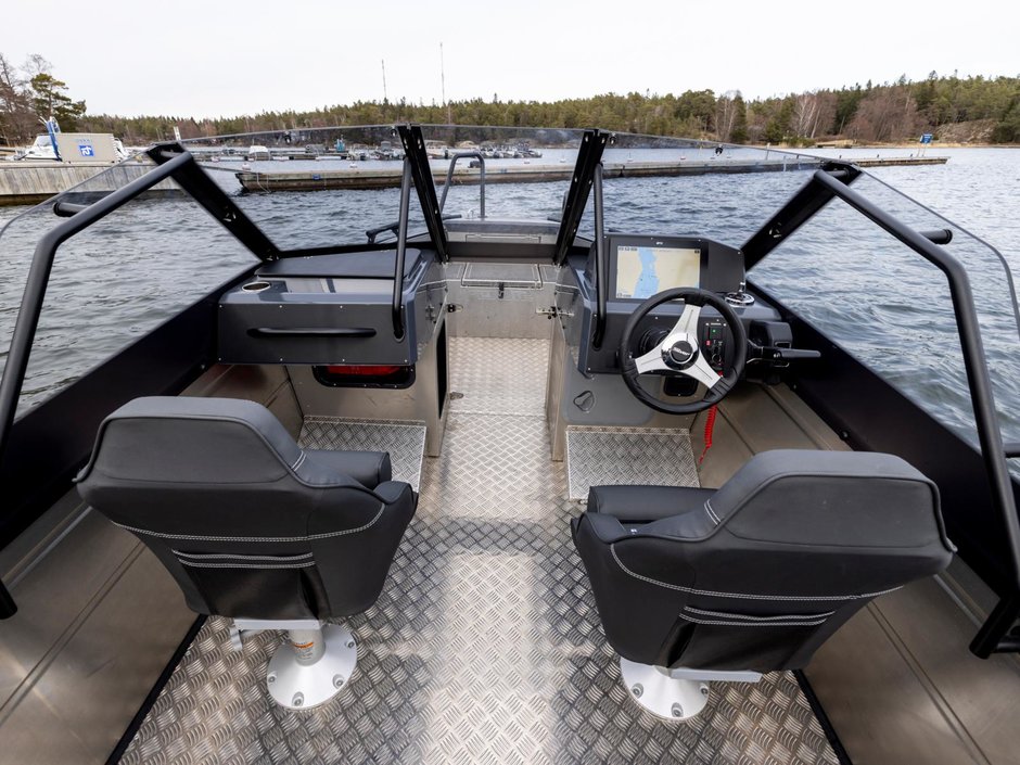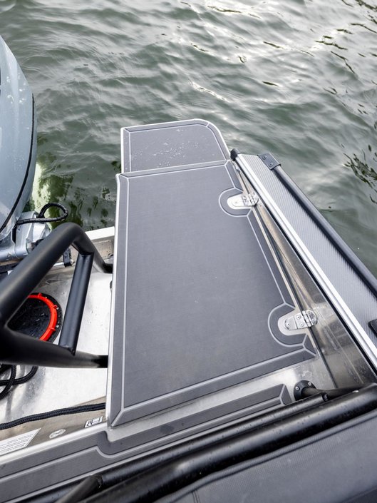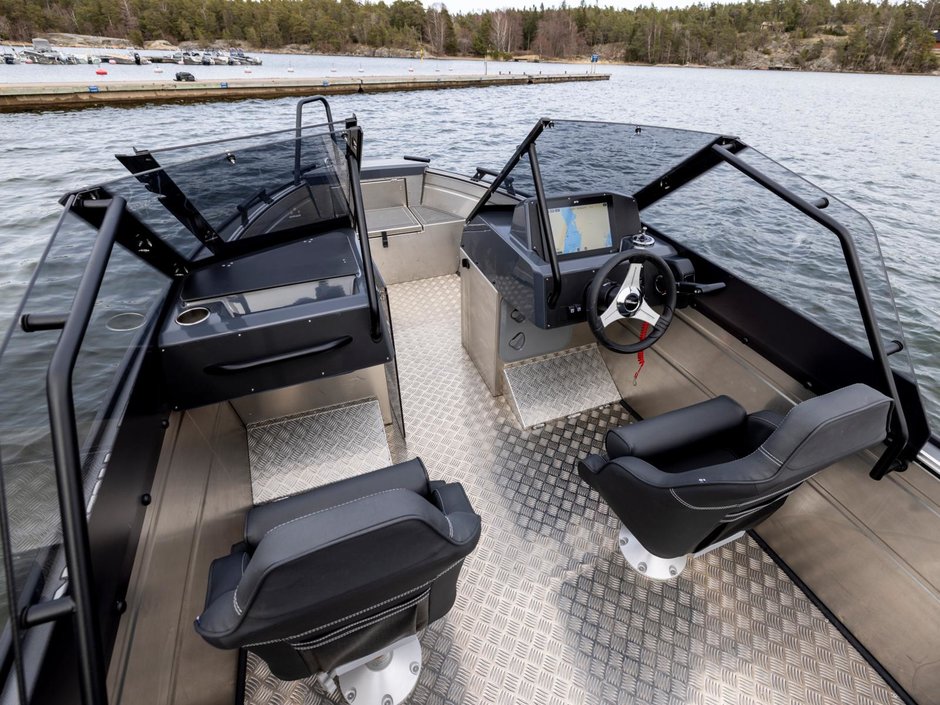 Modellerna är utrustade med en anpassningsbar akterbänkslösning, som möjliggör både en bekväm soffa och ett stort kastdäck för fiske.