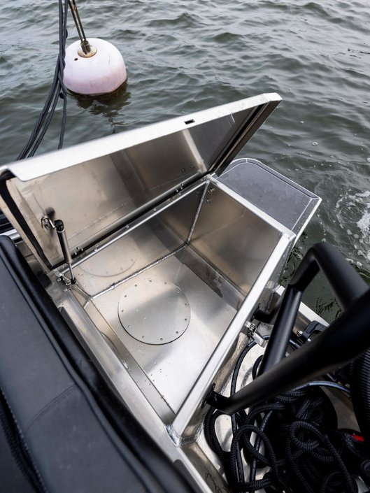 - Lådor för tampar på badplattformarna i aktern